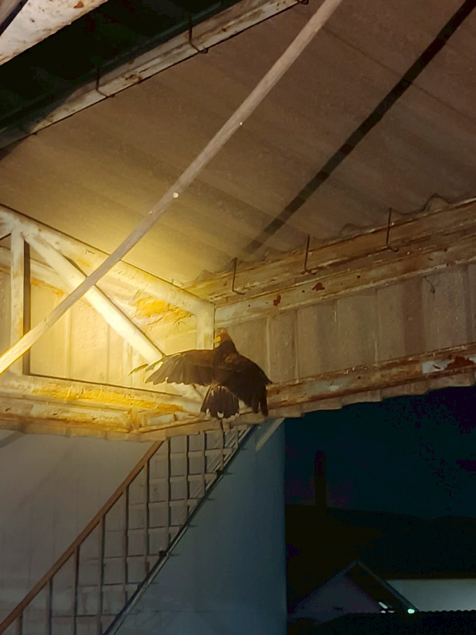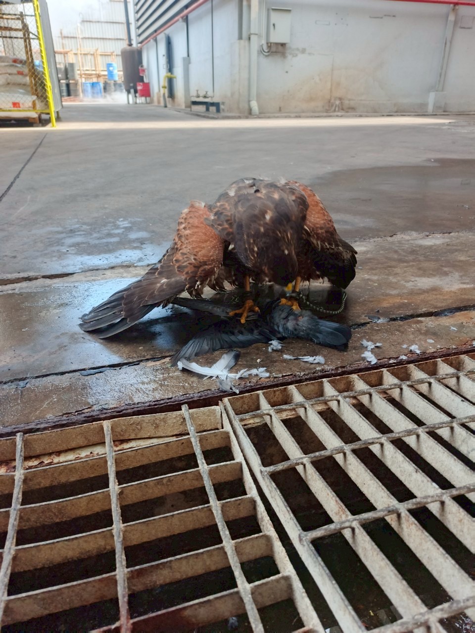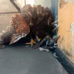ภายนอกอาคารพบพิราบจำนวนมากเกาะและทำรัง